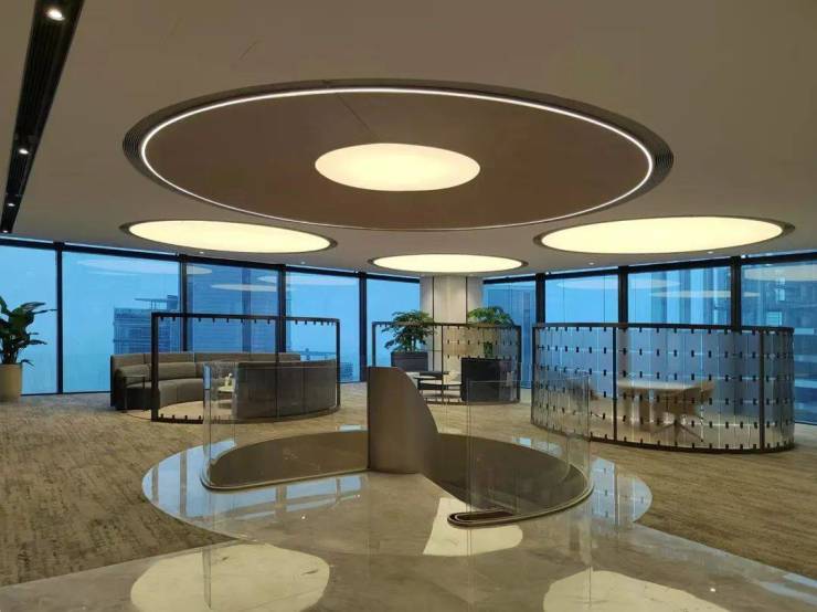 EIC写字楼的设计理念之一就是“无边界、无感通行”。项目采用了多项创新技术,如可停下18辆车的“梦露裙摆式”流感一体悬挑技术大雨棚,以及约5000平方米的三层挑高剧院式OFFICE大堂,这些设计使得人们在建筑中的移动更加流畅和自然。