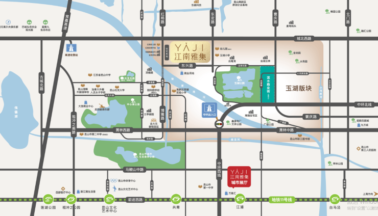 生态资源优越:紧邻约500亩玉湖公园(直线距离约600米),西南1.8–1.9公里可达中心湖公园,形成“双湖环抱”的稀缺生态格局
