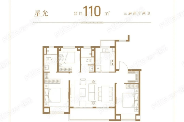 110㎡三室两厅一卫户型解析: