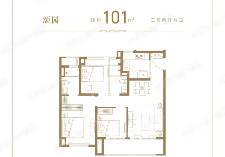 [朗阔空间]主次卧、客餐厅四面宽朝南,畅享朗阔公园谧境