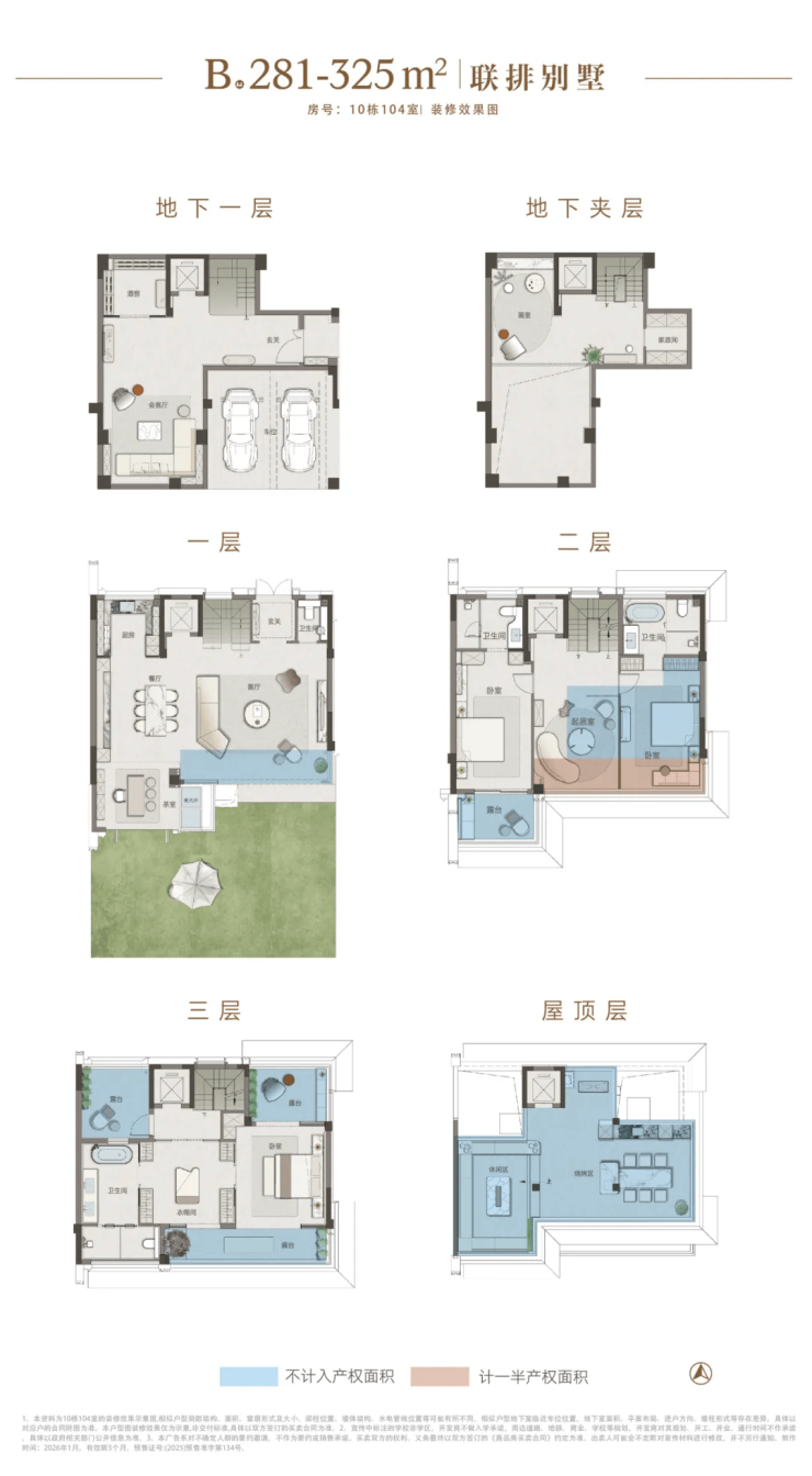 以B户型(建面约281–325㎡)为例,可拓展使用面积接近600㎡,满足多代同堂与家族社交需求 。