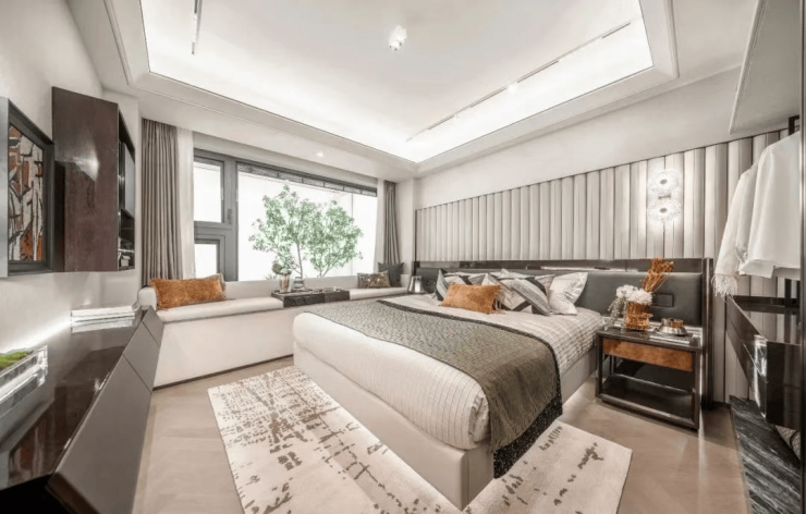 法式排屋:建面约437–483㎡,总价约2000万起,配备前庭后院、顶层大露台、全套房设计及层高6.4米的全明挑高地下室