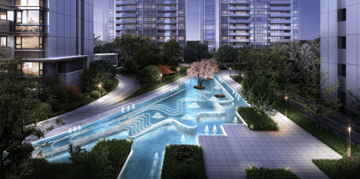 中央绿化带匹配标志性大面水景,以世界前沿的度假酒店为灵感,造极沉浸式居住体验,在层叠的光影中,打开城市对艺术生活方式深刻的无尽探索。