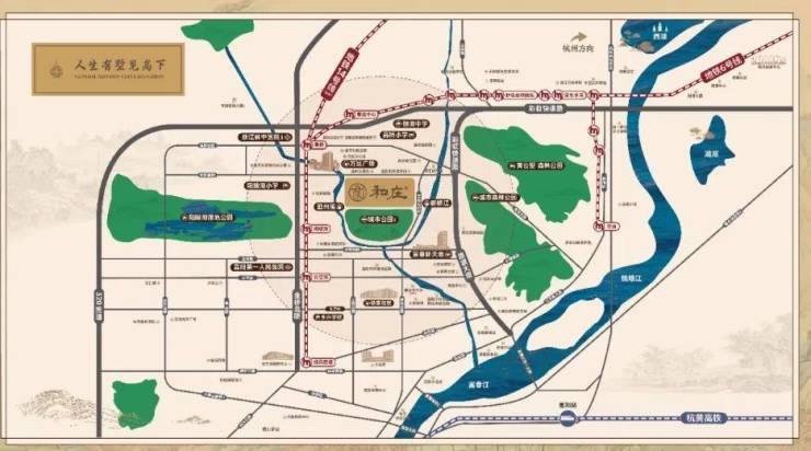 【景观配套】泗州溪、新桥江双水系左右环抱,黄公望、阳陂湖森林公园环伺,家门口独享城市公园与多功能运动场