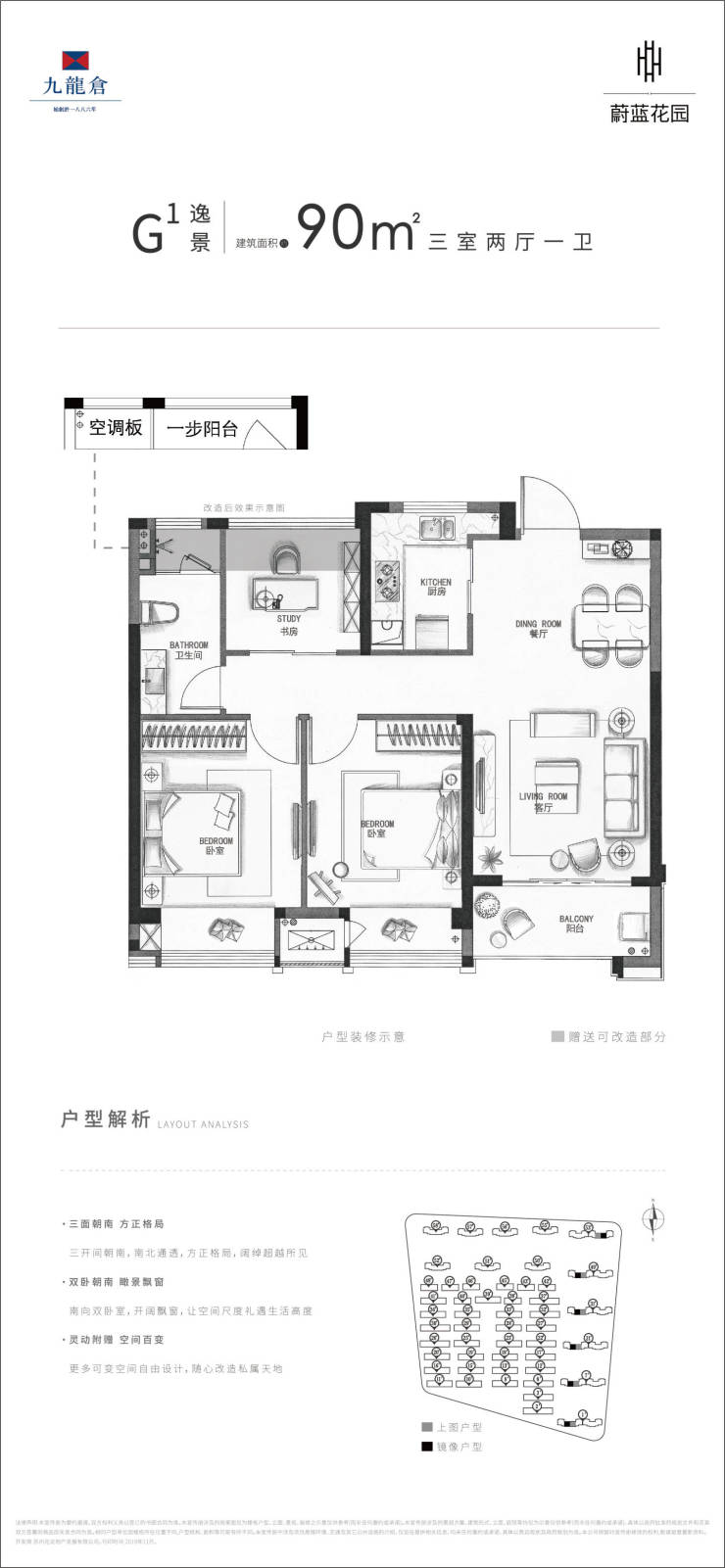 【建面90㎡3居】95.0-100.0万-分布于49# 1# 7# 21# 等,2梯4户,层高2.90米,总楼层21-27F