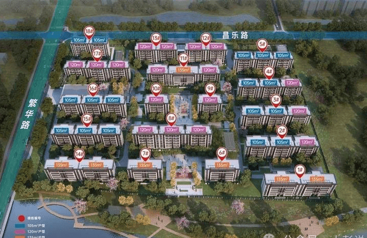 户型面积:105㎡(三室两厅两卫)、120㎡(三室两厅两卫)、135㎡(四室两厅两卫)