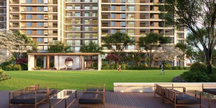 社区规划含70米超宽楼间距、艺术廊架及阳光草坪,强化归家动线体验