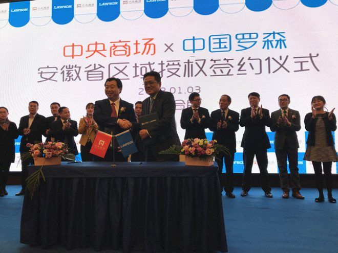 1月3日,中央商场集团与罗森(中国)投资有限公司在合肥签署安徽省少有区域授权加盟协议。