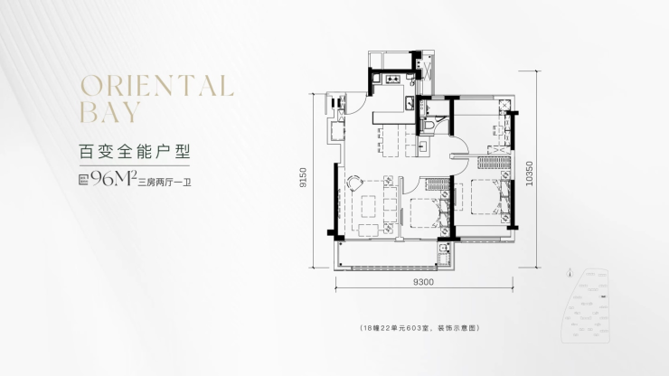 96㎡ 21,800–22,300元/㎡ 210万–215万元 195万–200万元 主力户型,三室两厅一卫,得房率约82%,适合新婚或小家庭