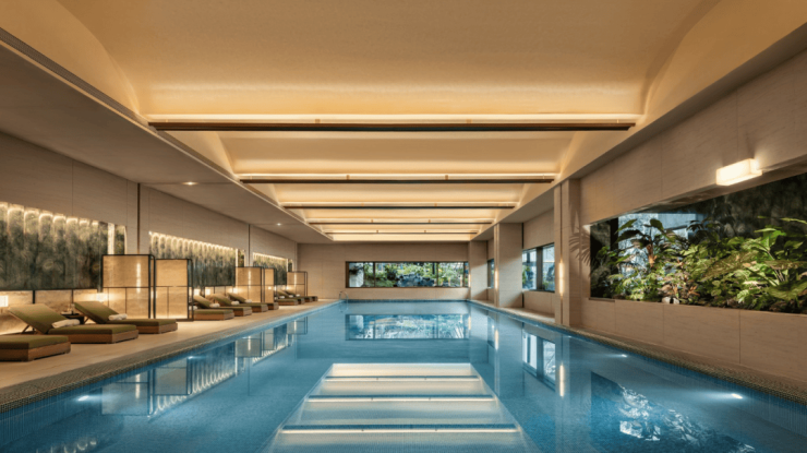 整个会所融合苏州园林与现代设计,多功能艺术空间达到1700㎡,包含:光之序厅、VIP空间、行政酒廊、艺术长廊、健身房、游泳池等。