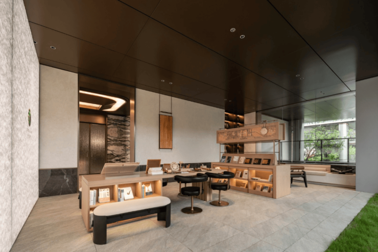 整个社区设置了六大核心架空层,构筑一个有温度、有交往的邻里社交场域。其中8号楼架空层打造为【墨屿书吧】,在11号楼构建了满载东方人文情怀的品茗空间。