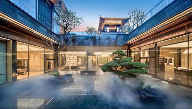 中庭水景:仿拙政园“荷风四面亭”,引活水入院,四季有荷