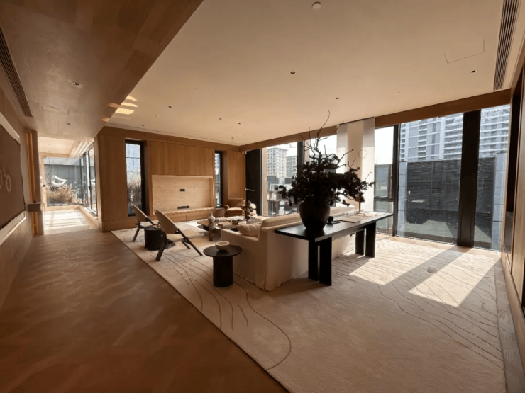 精装标准:装修标准达8000–10000元/㎡,采用意大利天然大理石、德国定制橱柜,配备三菱重工中央空调、兰舍新风、威能地暖,并搭载华为5.0全屋智能系统。