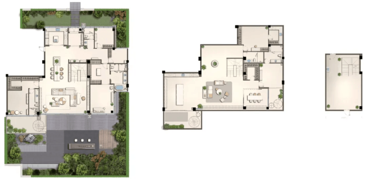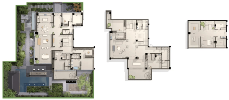 产品设计:主力户型建面约302–357㎡,涵盖标准层、复式及顶层云端户型,层高3.6米至4.8米不等,部分户型配备挑高跃墅、双首层立体庭院、7.2米挑空星空露台等创新空间。