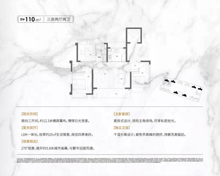 2025年最新销售动态显示,项目当前主力户型为建面约110㎡、120㎡、138㎡,精装交付均价约21500-25000元/㎡(总价240万-305万/套)。预计2026年5月31日交付,物业费3.5元/㎡·月