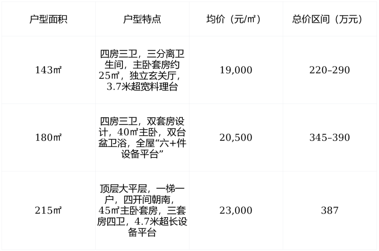 215㎡大平层:四开间朝南+三套房四卫+4.7米设备平台,满足三代同堂与高端生活需求
