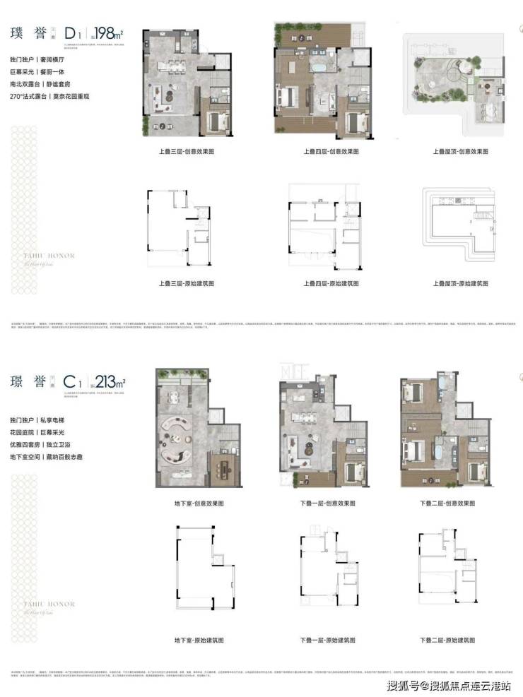 ·叠加——上叠 建面约198㎡、下叠 建面约213㎡;