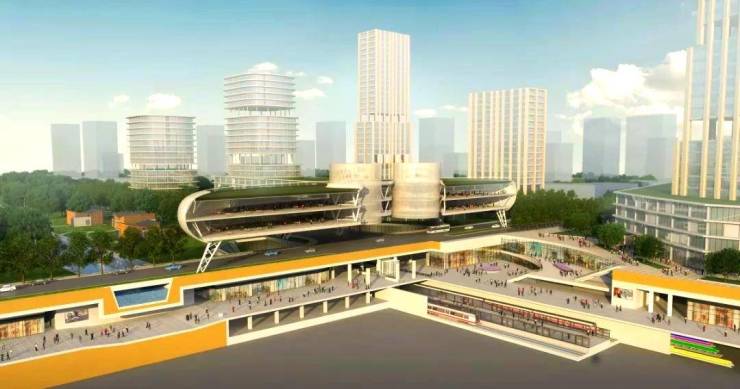 中央车站系统整合人行、车行、服务动线,通过双环岛交通组织,提升高峰时段通行效率