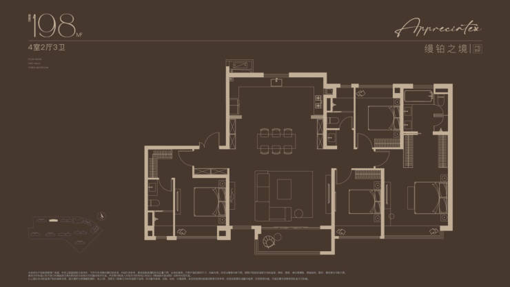 产品纯粹性:全部规划105-198㎡的3-4房大平层,确保业主圈层纯粹性