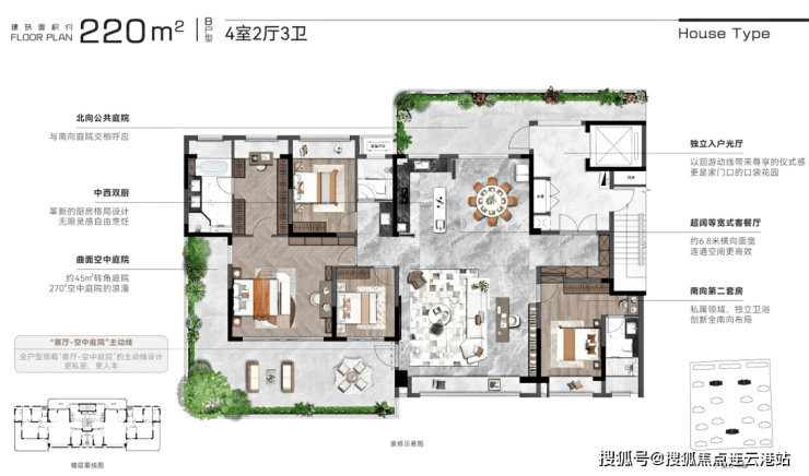 属于每个人的空中庭院丨户均约30-50㎡无界院落创新曲面转角院落,并实现全户型搭载“客厅-空中庭院”的主动线设计,整体营造立体墅式庭院生活场景。