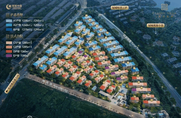 项目择址余杭区余杭街道运溪隧道与涵浦街交汇处,紧邻绿城经典豪宅桃花源,坐拥1.01超低容积率(杭州近十年最低),总占地约9.95万平方米,规划363席纯低密墅居,含99席法式合院与264席庐系叠墅,无高层、无公寓,真正实现“藏于林间,归于私境”的隐奢理想。
