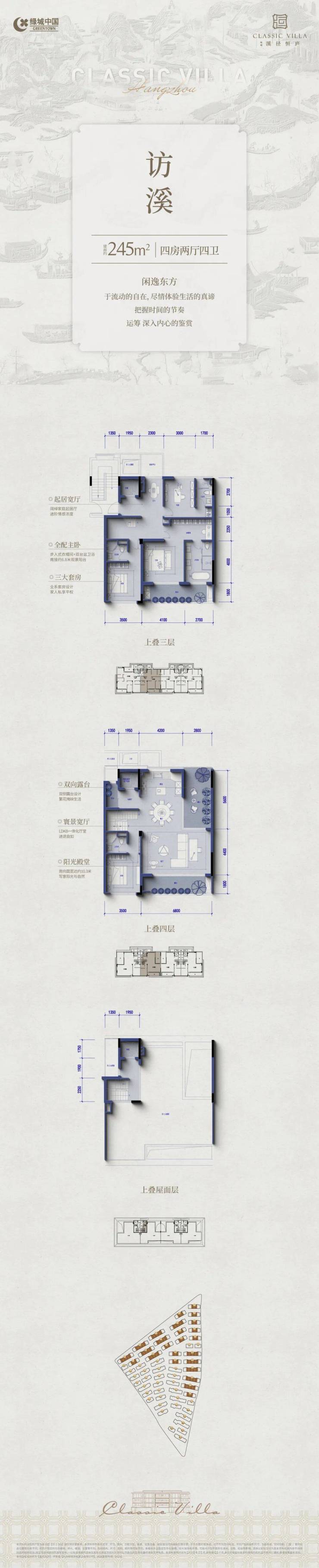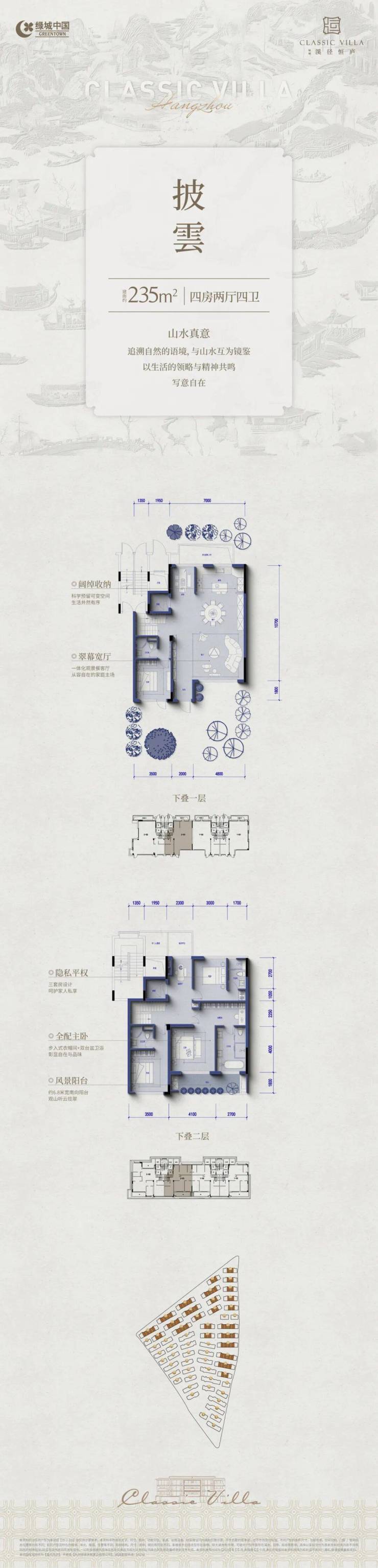 上叠:北向私密动线入户,独享约40㎡星空露台,可观星、品茶、俯瞰园林。