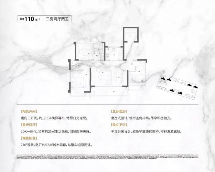 建面约110㎡三房:总价240万-242万(1梯1户)