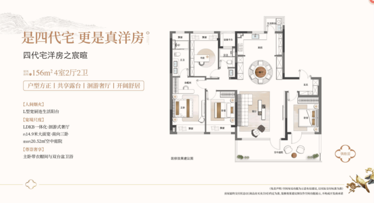 边户190㎡:4室2厅3卫,30㎡空中庭院+生活阳台