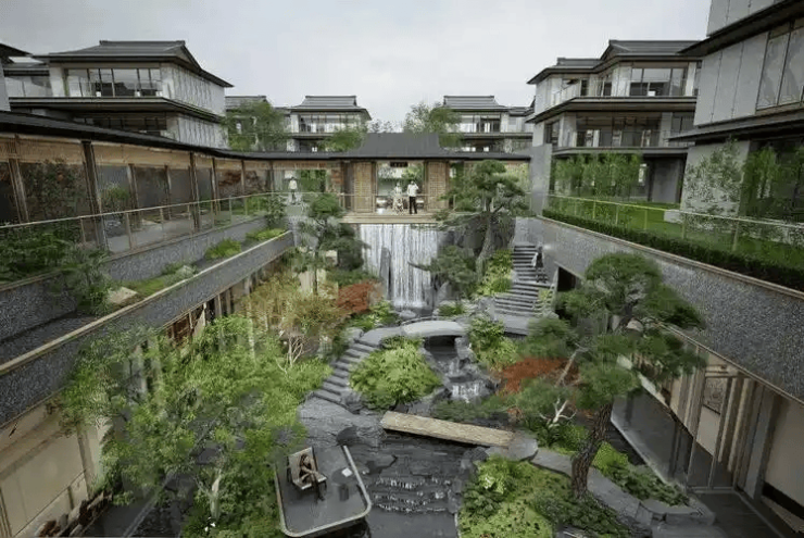合院产品提炼宋式歇山顶等元素,打造东方三段式建筑美学。