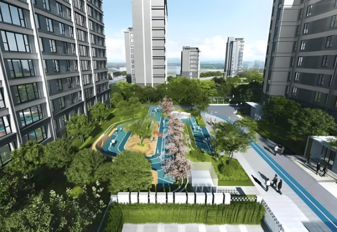 项目南临西横塘江景观绿带,三面被公园环抱,实现"家在公园内"的居住体验。社区内30%高绿化率,1.5低容积率,打造天然氧吧社区
