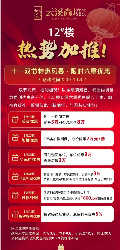 2025年10月参考均价为13470元/㎡(环比下降0.38%),单价区间13000-16000元/㎡。项目推出"低首付13万起"优惠政策,并赠送装修大礼包,首开户源124套(首开楼栋7#、8#、10#、11#)