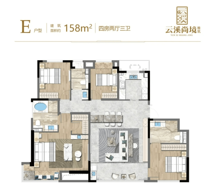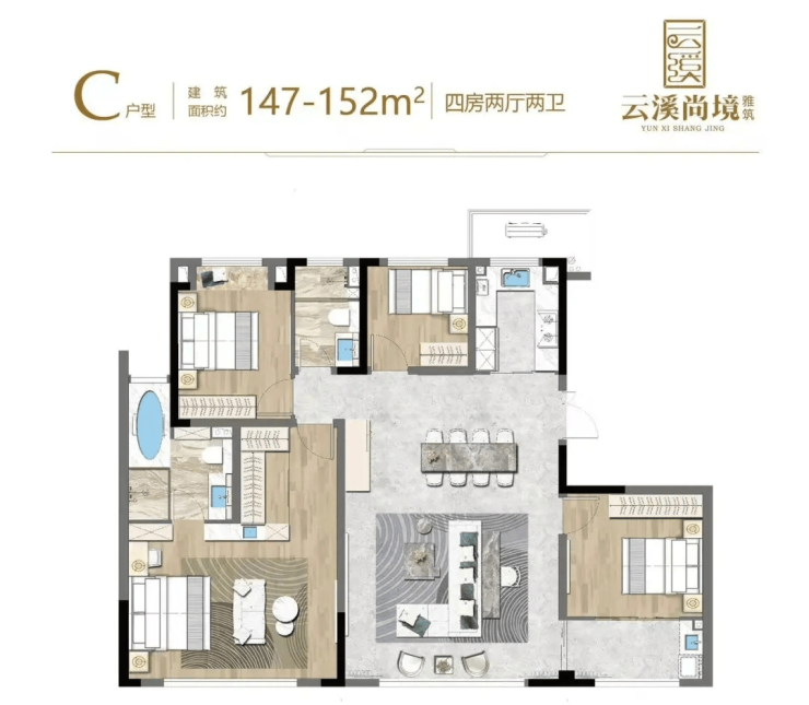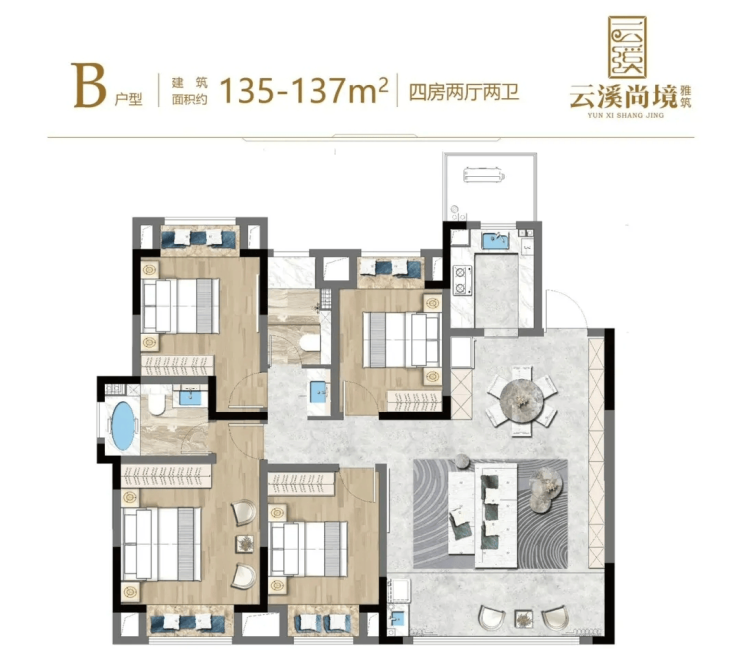 建面137-146㎡四居:总价180-220万,分布于7#、8#、10#、11#等楼栋。近12.4米大面宽,客餐厅空间近5.7米,主卧套间功能齐全,适合改善型家庭