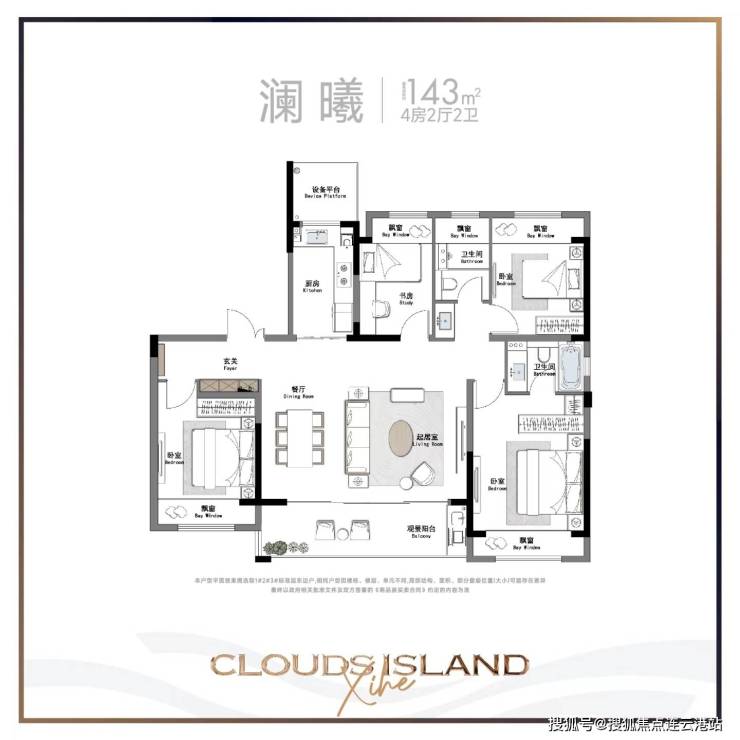 项目主推 3 居和 4 居户型,以建面 105㎡的 3 室 2 厅 2 卫户型为例,平层结构,朝南设计,采光通风俱佳,为不同家庭结构提供多样化居住选择。