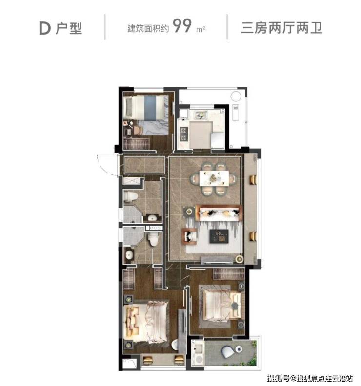建面约89-110㎡三至四房,主力为89㎡三房两卫、98-99㎡三房两卫、110㎡四房