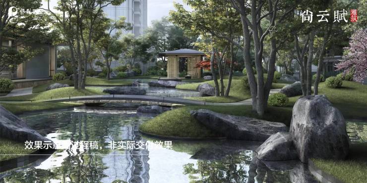 社区内部采用30%高绿化率,打造具有江南水乡韵味的静谧空间