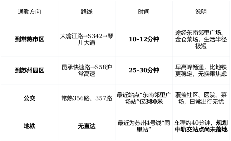 🚗 交通:无地铁,但自驾通勤效率碾压同区域