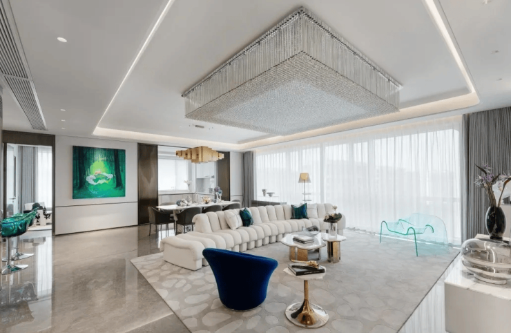 整体设计风格采用现代轻奢风格,营造了一个独具艺术气息的美学空间。每一件家具与配饰都充满灵动和趣味性,彰显房子主人的高雅品味。