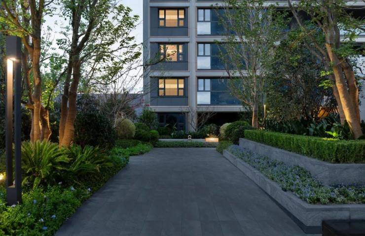 小区绿化率35%,采用“双轴-四园-八境”园林设计