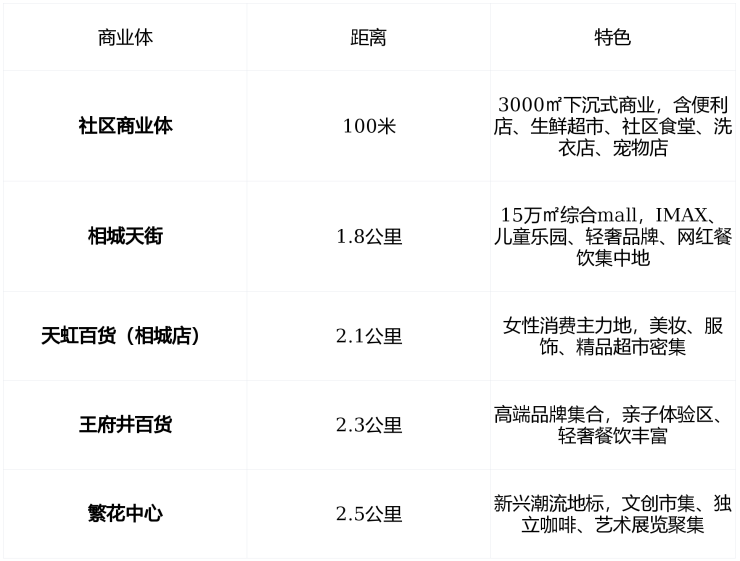 生活闭环 :早餐在社区超市,午休喝咖啡在繁花中心,周末逛天街,购物不跨区,节奏稳如钟表。