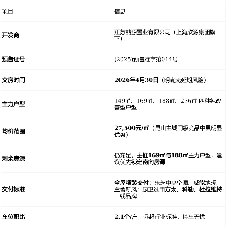 昆山主城罕见的低密小高层社区,368席纯改善户型,精装交付配一线品牌,均价约27,500元/㎡,2026年4月30日交房,配套成熟、交通便捷、环境优越,是苏州城西板块极具性价比的“城芯绿洲”。