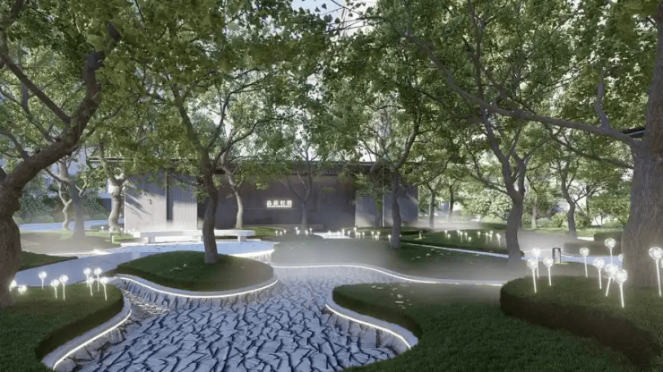 一环两轴九空间布局 :商业、自然、文化场景全时段切换,满足社交与独处需求,如300米星空夜跑道、mini高尔夫等青年设施。