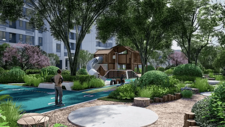 全龄友好配套 :涵盖童趣乐园(树屋/沙坑)、香氛花园、长者康养带,适配三代同堂生活节奏。