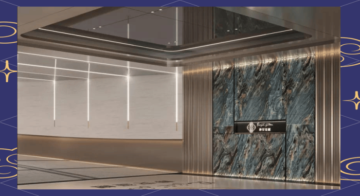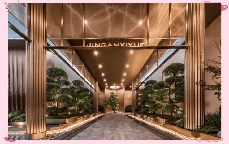 静安玺樾采用新海派风格,外立面结合石材、真石漆、铝板构建三段式经典格局,形成“历史厚重感-现代韵律感-未来轻盈感”的视觉层次。大面积石材铺装搭配横向铝板线条,还原海派立面的摩登风格,香槟金与经典咖的色彩搭配,与静安的气质相得益彰,让整个建筑在典雅中透着时尚质感。