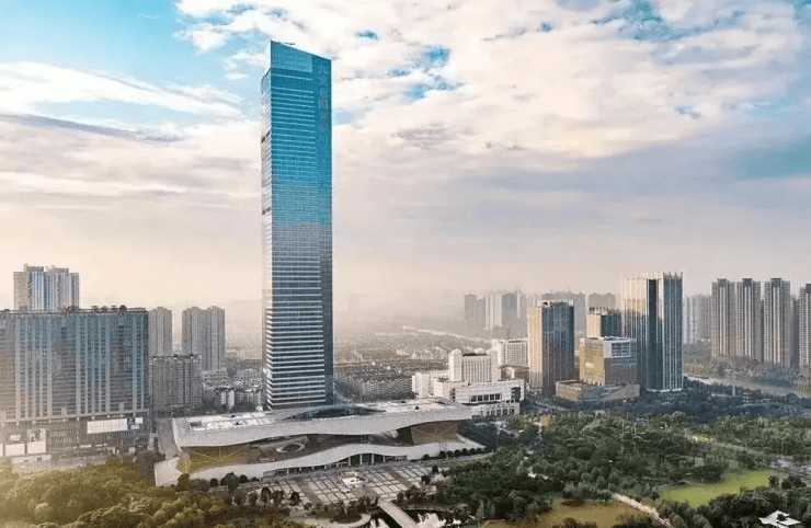 风格:现代主义新中式,立面采用中式博古架元素、质感铝板及大尺度玻璃面,借鉴无锡古建筑披檐和花窗元素,实现传统与现代的平衡。