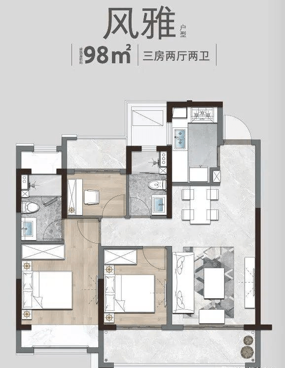 ✦|𝟵𝟴-𝟭𝟯𝟬㎡ 三房/四房准现房热销中
