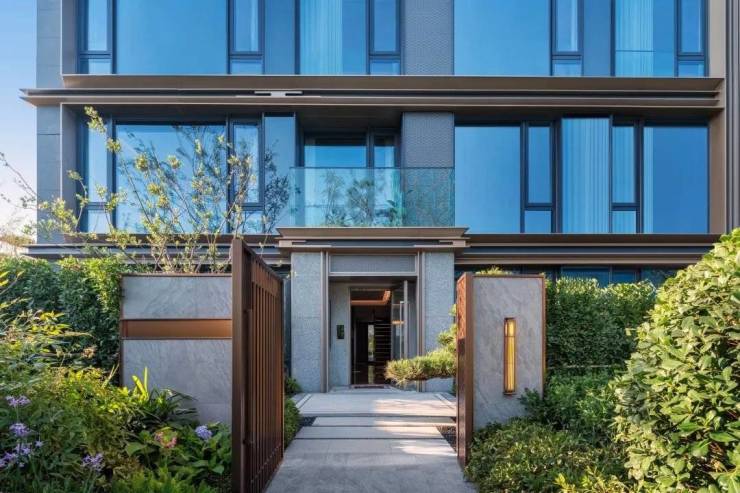 外立面采用全铝板+玻璃幕墙,叠墅融合新宋式坡顶与挑檐,打造约6000㎡实景示范区
