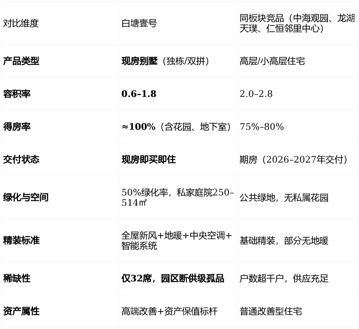 五、产品优势与竞品对比:低密现房别墅的绝对稀缺性