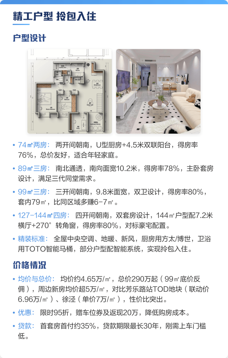户型:78-99㎡房源245套,另有建面约72-127m²的2-4房,满足刚需和改善需求。