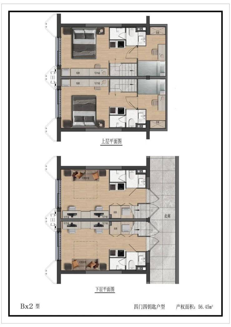 【少量户型】:56.45㎡四门四钥匙六房 57.71㎡四钥匙四房