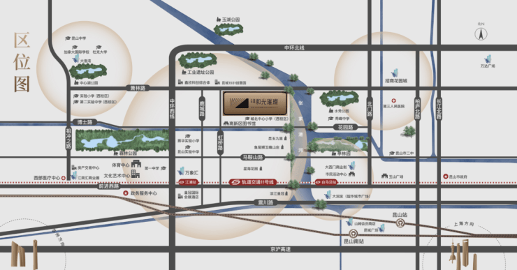 项目所在的花园路片区由中环、张家港及庙泾河围合而成,未来将成为昆山高新区功能完善的生活片区代表